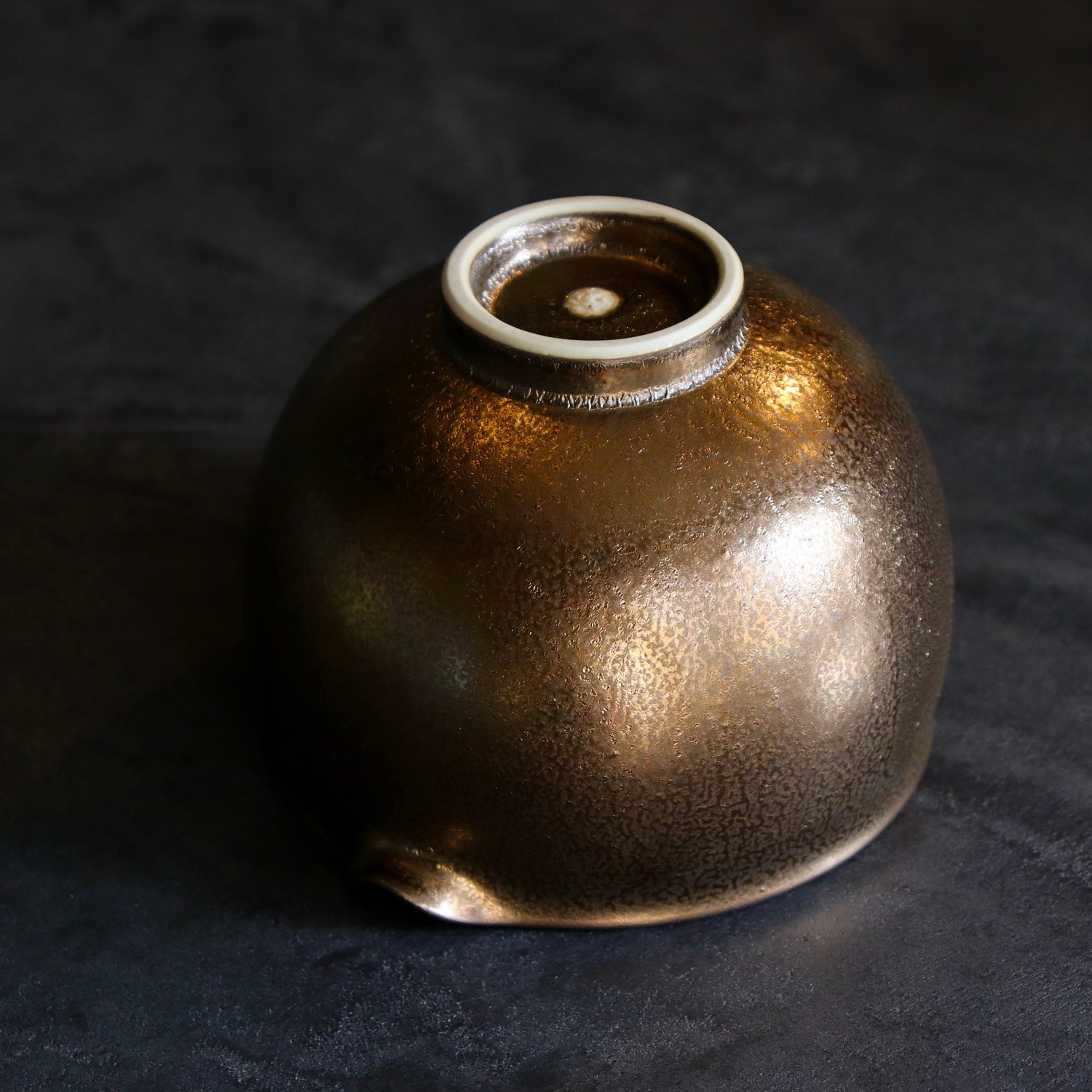 Kiwakoto Suikaen Gold Matcha Pouring Bowl & Whisk Stand Set 片口抹茶碗と茶筅直しセット ゴールド