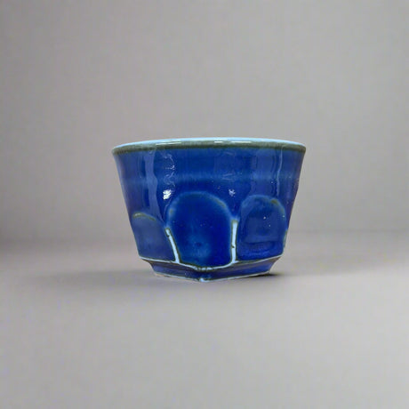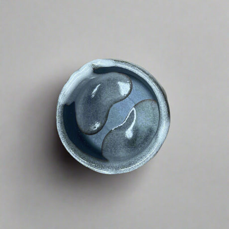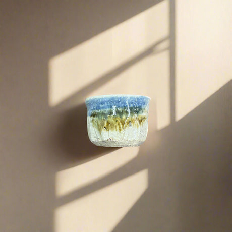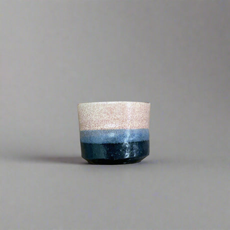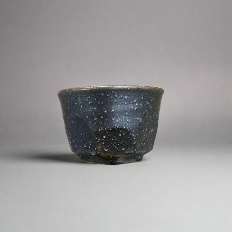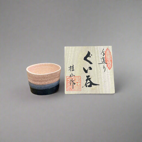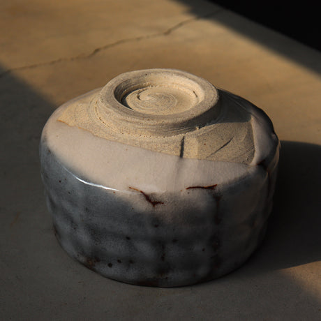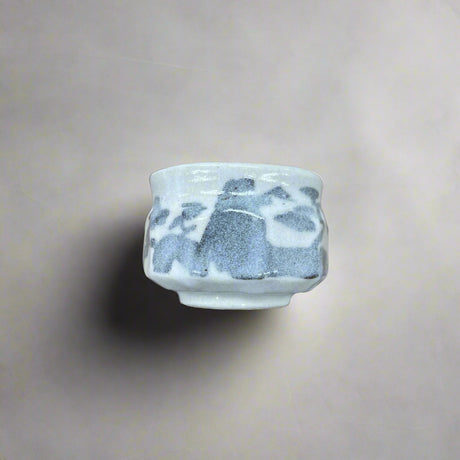 Keizan Kiln: Handcrafted Shino Aikake Guinomi Cup with Wooden Box 桂山作:手造り志野藍掛けぐい呑