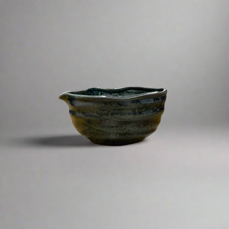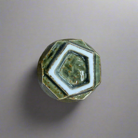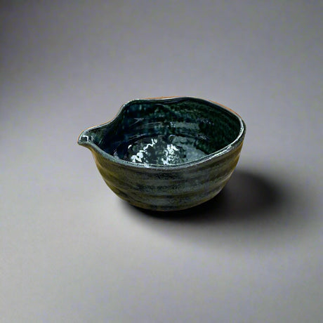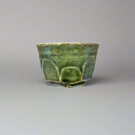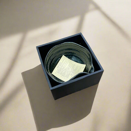 Keizan Kiln: Handcrafted Mingei Oribe Guinomi Cup with Wooden Box 桂山作:手造り民藝織部ぐい呑