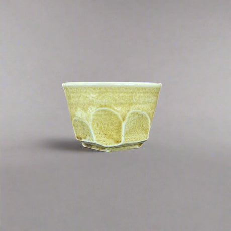 Seiangama: Carved Design Mino-yaki Guinomi Cup 5 Piece Set with Wooden Box 削ぎ五様ぐい呑揃