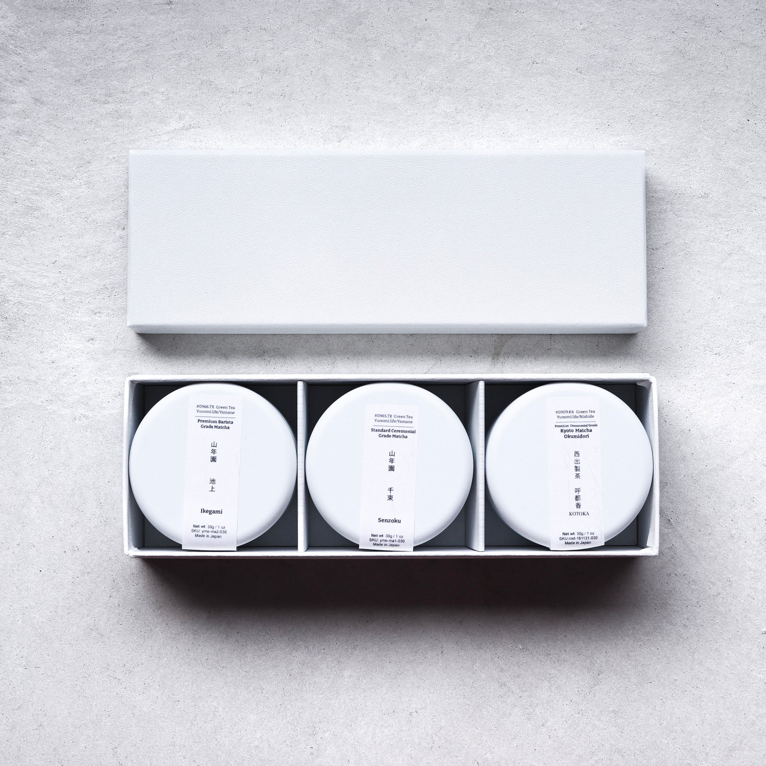 a high-quality ceremonial-grade matcha with a refined flavor and aroma, a ceremonial-grade matcha ideal for usucha, and a versatile barista-grade matcha perfect for both usucha and matcha lattes.